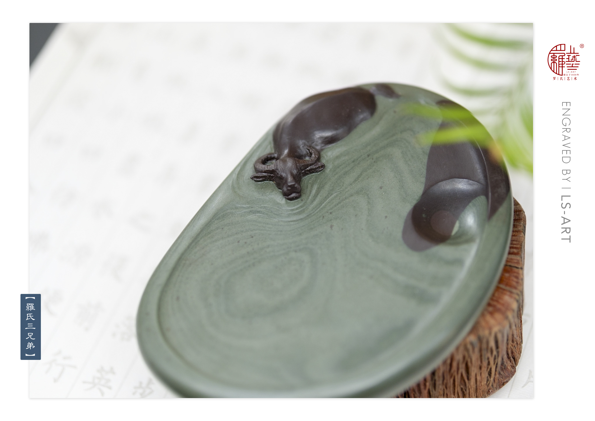 介 绍:“绿膘”色泽翠绿鲜活,呈层状结构,与紫黑砚石融为一