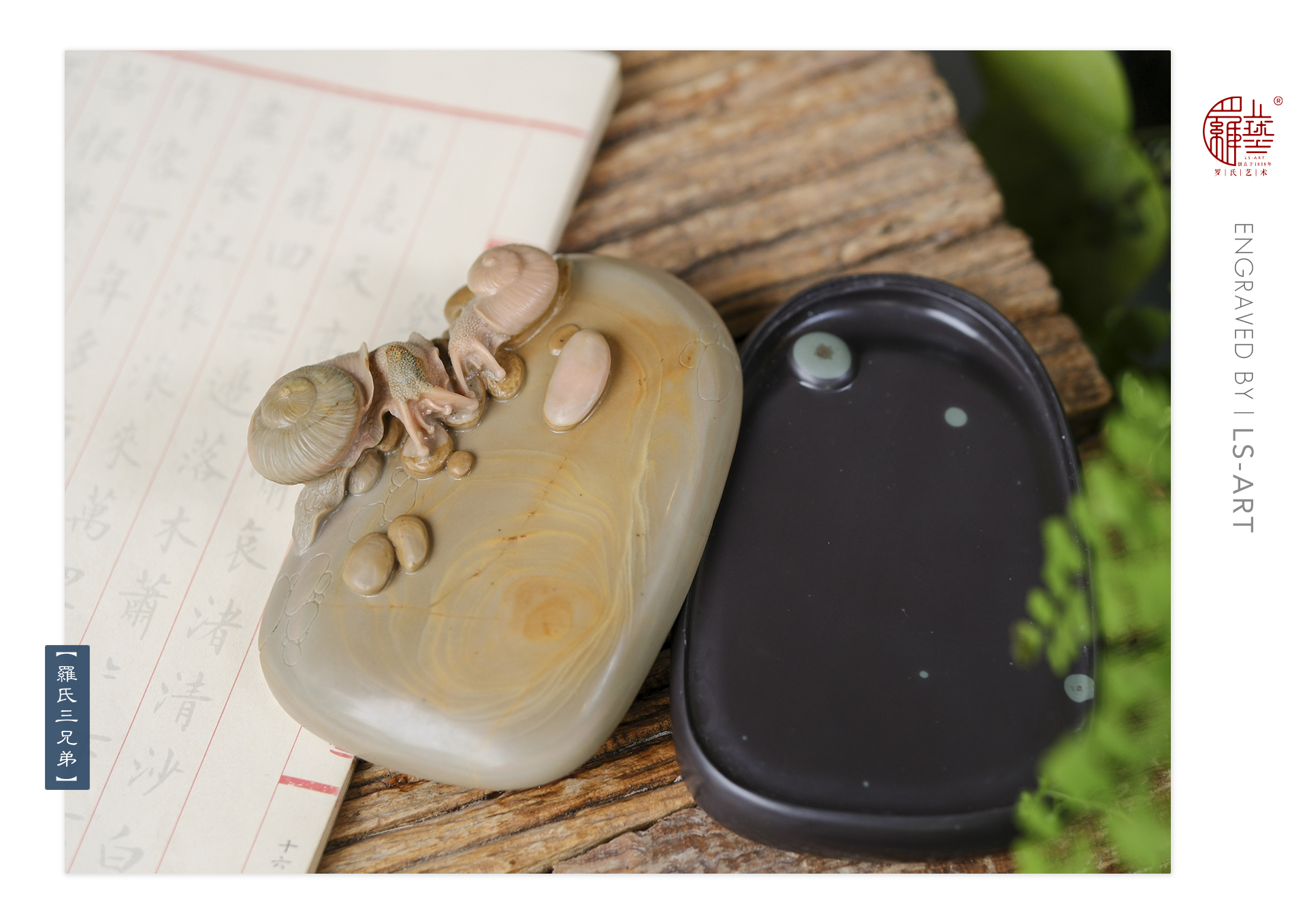 石 品:绿膘介 绍:“绿膘”色泽翠绿鲜活,呈层状结构,与紫黑砚石融为一